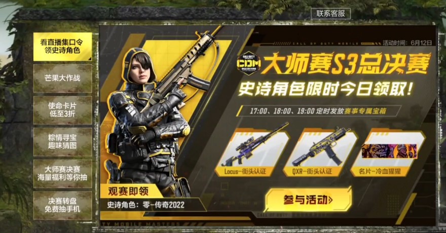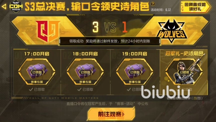 本次在游戲中剛看決賽還可以領(lǐng)取到特殊獎(jiǎng)勵(lì),首次觀看可以獲得五個(gè)賽事寶箱、觀看十分鐘可以領(lǐng)取一個(gè)賽事限定頭像框,觀看二十分鐘可以領(lǐng)取史詩(shī)級(jí)新角色,觀看三十分鐘可以領(lǐng)取史詩(shī)級(jí)武器和特殊名片,這次賽事活動(dòng)的福利還是非常大的,大家千萬(wàn)不要錯(cuò)過(guò)哦。