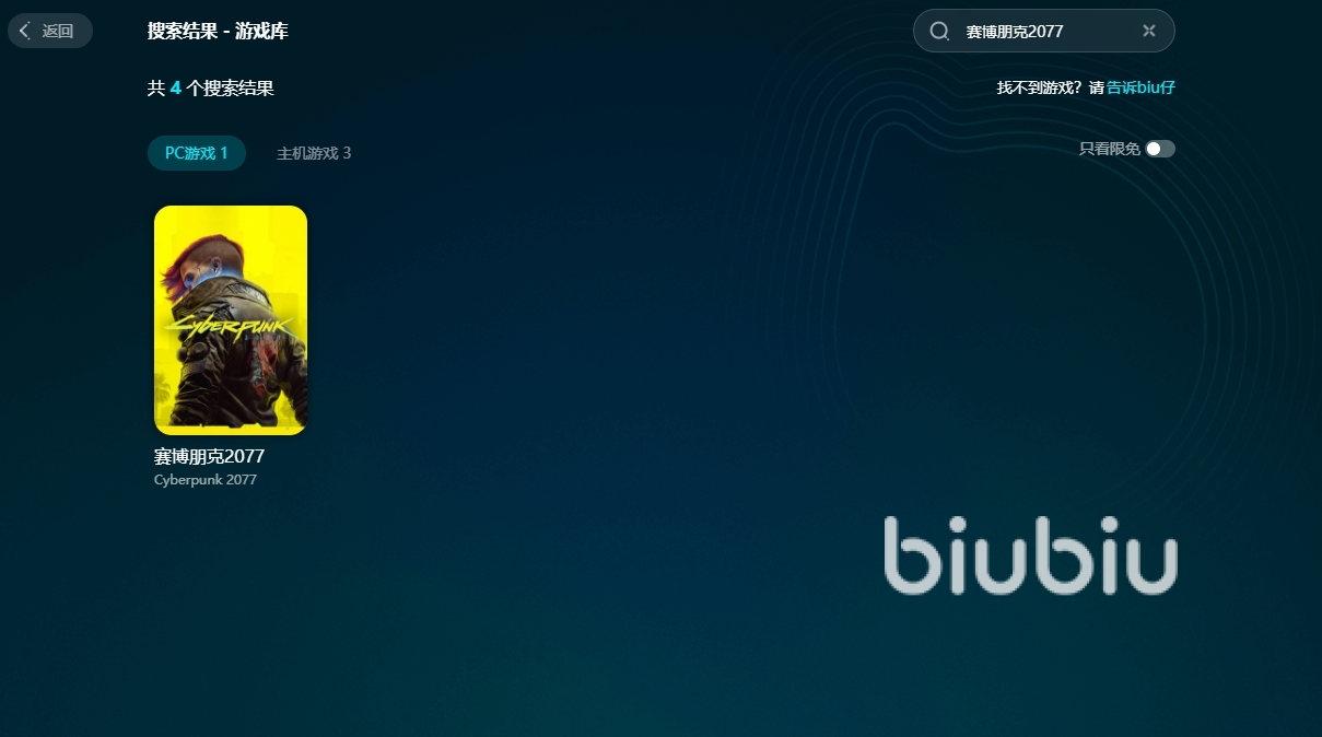 根據(jù)官方目前消息,今年steam平臺秋季促銷正式開始,玩家們可以在秋季促銷活動中以4.5折的優(yōu)惠入手賽博朋克2077這款游戲,它的原價是298元,折后價為134.1元,可以說這個價格真的非常優(yōu)惠了,對這款游戲感興趣的小伙伴千萬不要錯過,不過也有不少玩家反饋自己在購買游戲的過程中會遇到購買失敗或者是根本找不到游戲的情況,這都是因為當前網(wǎng)絡(luò)不穩(wěn)定所導(dǎo)致的,想要有效的解決,大家不妨使用biubiu加速器,這款加速軟件能夠為我們提供更便捷的加速服務(wù)。同時,里面也涵蓋了豐富的游戲,就拿這個賽博朋克2077舉例子,我們可以直接搜索游戲名稱對其進行加速,然后無論是在,平臺購買游戲還是體驗游戲都會變得更加順利。