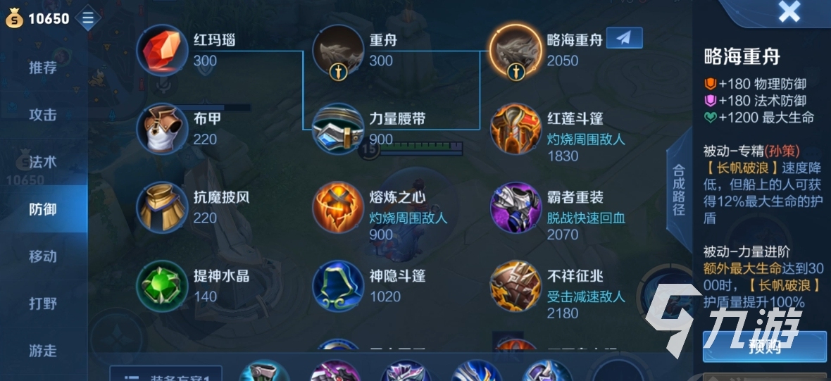 略海重舟屬于高級專屬裝備,帶來屬性的提升,增強(qiáng)一百八十點(diǎn)物理防御力和魔法防御力,提升一千兩百的最大生命值。