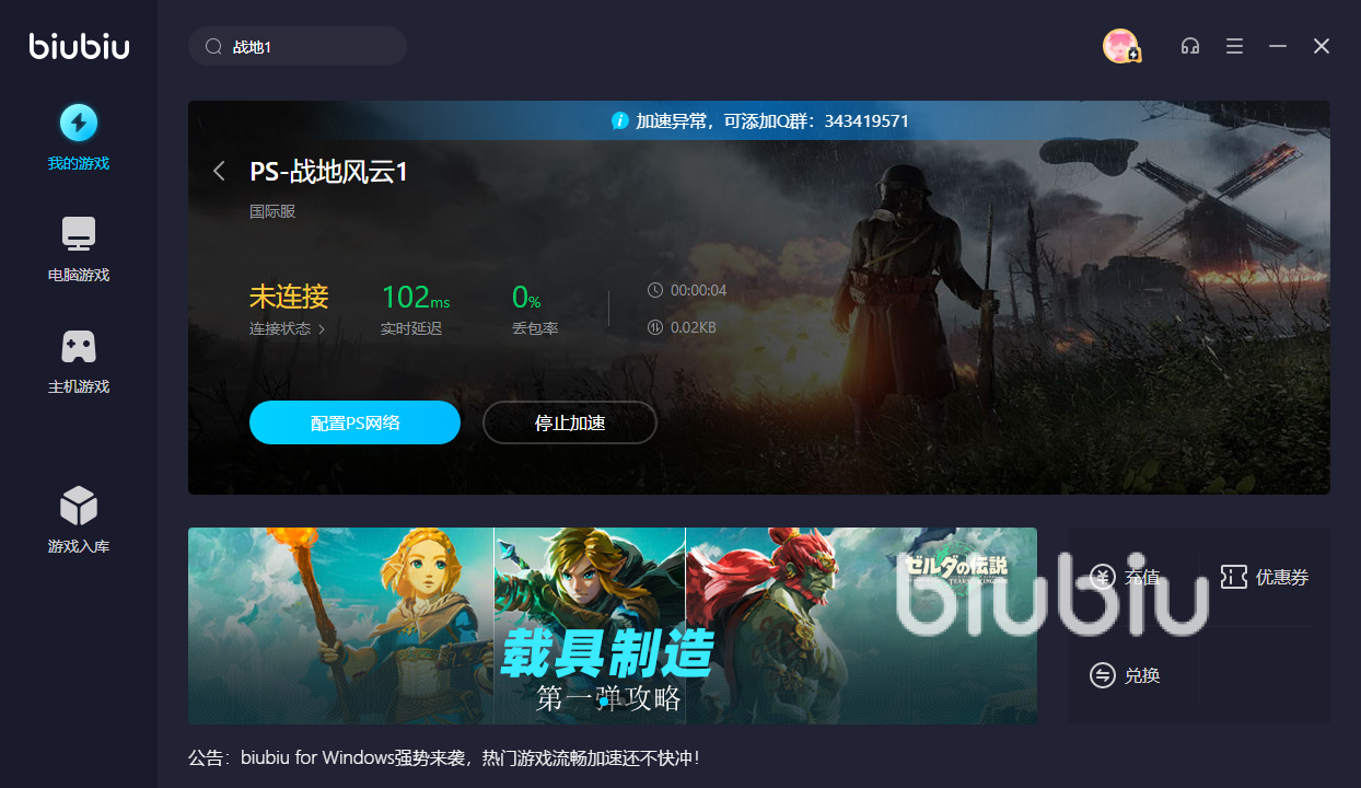 上述就是本次小編分享給大家戰(zhàn)地一哪個(gè)加速器好用,聊到這里就要說(shuō)再見(jiàn)了,還有那些不明白的話(huà)題了嗎?可以點(diǎn)擊小編提供的鏈接下載安裝,也可以直接登錄biubiu的官網(wǎng)查看更多的精彩資訊,感謝大家的觀看和喜歡,更多的精彩內(nèi)容期待下一次跟大家更好的遇見(jiàn)。
