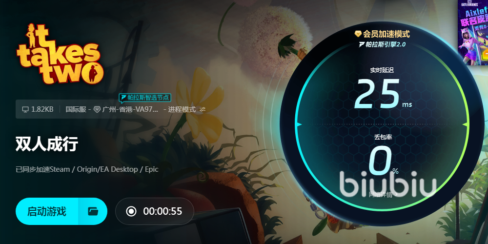 雙人成行這款游戲不管是情節(jié)推動還是操作機(jī)制都跟必須要兩個人完成,是真正意義上的雙人游戲,除了玩法有趣以外,游戲畫面的電影感和劇情的故事性也很優(yōu)秀。玩家很容易玩上頭,沉浸在動人的情節(jié)里,一玩就是幾個小時。而大家只管專心玩游戲,加速的事情都交給biubiu吧,它性能穩(wěn)定效果卓越,把家庭游戲網(wǎng)絡(luò)改善得電競賽事那么快,絲毫感覺不到卡頓和延遲的存在。