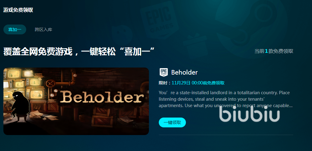 在biubiu里還有機(jī)會領(lǐng)到免費(fèi)的游戲,大家在空閑之余可以看一看,不管是喜加一還是跨區(qū)入庫里面的游戲都是免費(fèi)領(lǐng)取的,并且喜加一每期都會更新游戲。贈送的都是好玩又熱門的游戲,足以見biubiu想要給大家派送快樂的誠意。
