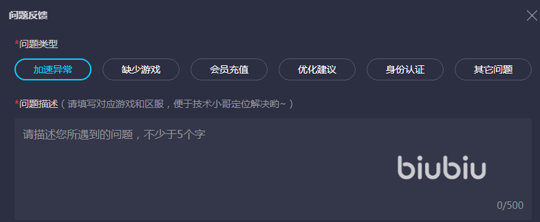 就算偶爾遇到加速器崩潰也沒關(guān)系,崩潰以后大家只要重新進(jìn)入就可以了。如果有時間的話,也歡迎用戶向平臺反饋加速異常的情況,反饋系統(tǒng)在右上角那里,點(diǎn)擊耳機(jī)圖標(biāo)就能找到。出了崩潰異常外,其他想要平臺改進(jìn)的地方,或者是想要添加的游戲都可以登記在這里。系統(tǒng)會根據(jù)反饋內(nèi)容的分類來交給不同的部門處理,讓用戶獲得更好的加速體驗(yàn)。