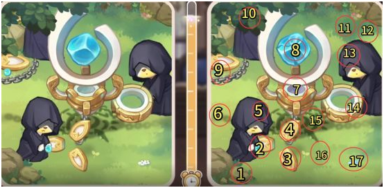 每個玩家的圖片可能有出入,一共有17處不同,如圖所示。