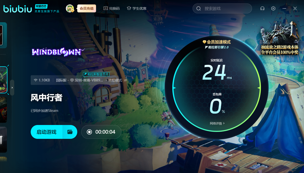 風(fēng)中行者屬于海外佳作,并且有著極好的口碑,所以暫且還沒有上線國服。為了進(jìn)入這座以勇士著稱的小島,我們需要用上biubiu。才能開啟風(fēng)屬性傳送陣,將我們送至這邊。新用戶的話可領(lǐng)取24小時的免費(fèi)加速,新老用戶鍵入【biubiu不卡頓】,還能獲得三天免費(fèi)加速。如果闖關(guān)途中太卡的話,就會被陷阱擊落下來。只有用了加速器,還有萬分之一的機(jī)會,連續(xù)闖過大量的危險境地。