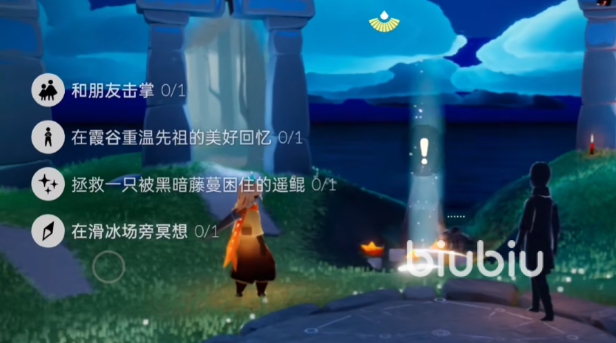 在霞谷還有一個(gè)要做的就是回溯先祖了,這位要重溫的先祖是在穿過滑行或是飛行賽道最終處,進(jìn)來這里后直接往左前方的神像后面飛去,在那里便是此次的目標(biāo)先祖了,舉火將其點(diǎn)亮后就可以再次進(jìn)行收集,全部看完后完成此項(xiàng)任務(wù)了。