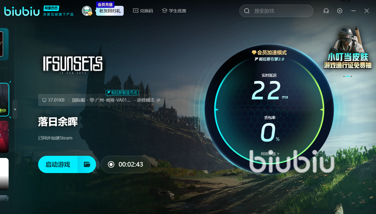 落日余暉作為國際性的免費(fèi)大作,目前暫時沒有上線國服。唯有啟動biubiu后,方有能力乘坐飛機(jī)來到在一片末日場景中。新用戶的話,可以領(lǐng)取24小時的免費(fèi)加速;另外新老用戶通過【biubiu不卡頓】,便能額外獲得三天免費(fèi)加速。如果在初期尋找物資時太卡的話,可能就會在空曠的場地中被人擊殺。用了加速器后,才能讓你具備安穩(wěn)的發(fā)育條件,并及時找到足夠多的物資。