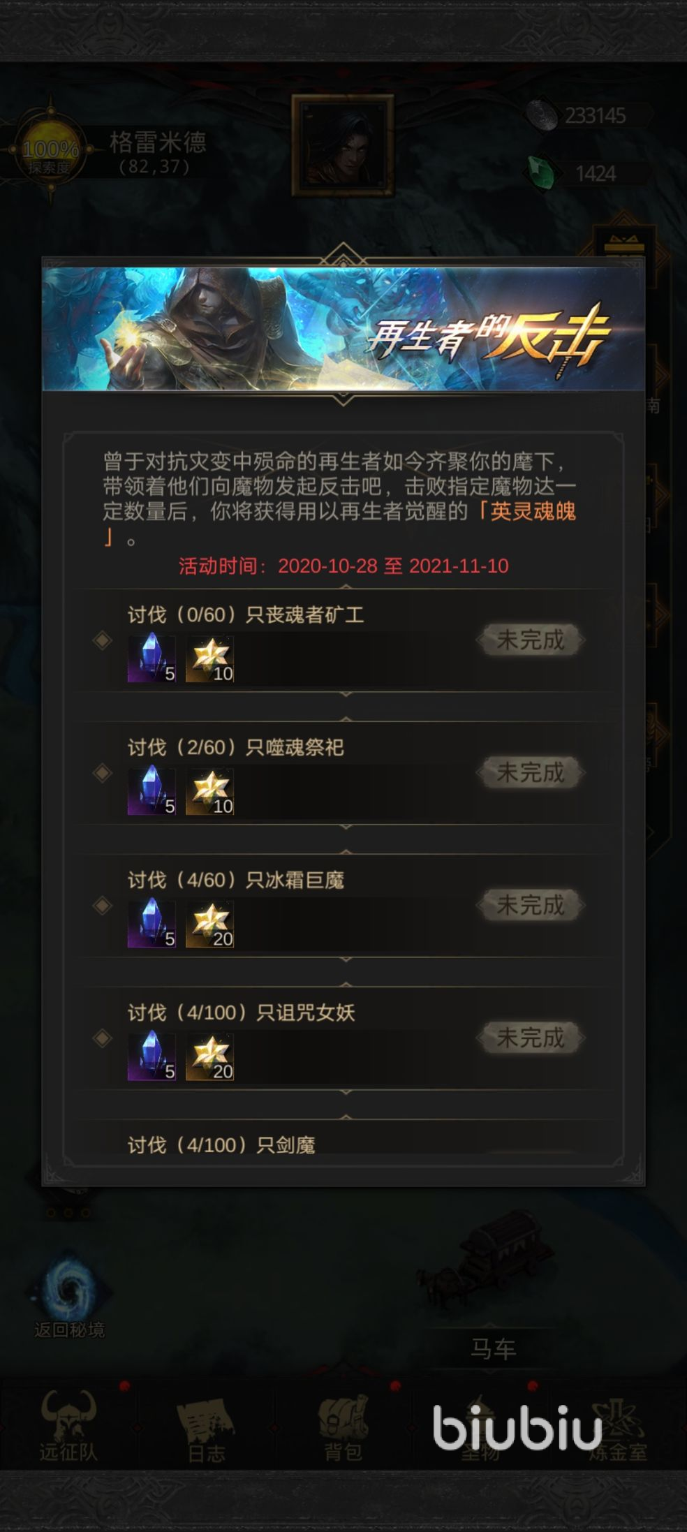 2、討伐(0/60)只喪魂者礦工、討伐(0/60)只噬魂察祀、討伐(0/60)只冰霜巨魔、討伐(4/100)只詛咒女妖、討伐(4/100)只劍魔、討伐(4/100)詛咒女妖。