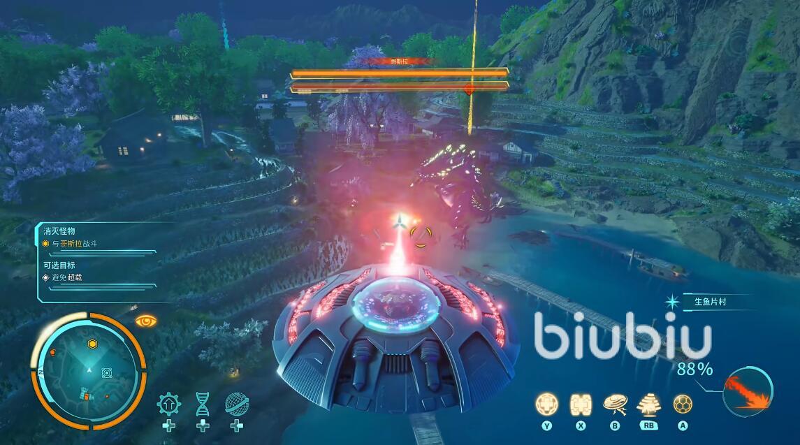 大家在觀察的過程當中會不斷看到哥斯拉朝著城市的方向前進,這一階段是沒有辦法發(fā)動攻擊的,玩家們只能看著哥斯拉順利的登陸到城市的外圍。此時會觸發(fā)劇情,波克斯要求主角想辦法將這個怪獸給打敗。此時,玩家們的任務(wù)就會轉(zhuǎn)換為將哥斯拉給消滅掉,這個時候大家就需要發(fā)揮好飛船的優(yōu)勢。