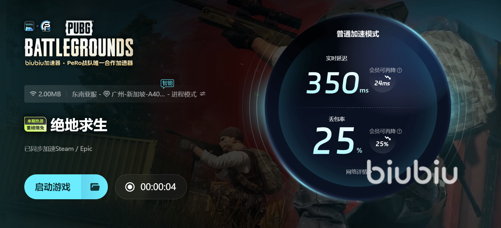 在絕地求生的這款游戲當(dāng)中,最主要的核心玩法就是通過(guò)不同的途徑搜尋各種道具,然后盡最大的可能堅(jiān)持到最后一秒就可以取得勝利。當(dāng)你遇到了保命道具了之后就可以想盡一切辦法活下來(lái),游戲當(dāng)中可以通過(guò)聲音來(lái)辨別敵人的腳步聲和偷襲,所以網(wǎng)絡(luò)出現(xiàn)卡頓的話,很容易被敵人攻擊,當(dāng)有了biuibiu加速器之后,就會(huì)明顯的感覺(jué)到畫面和聲音更加得細(xì)膩和清晰了。