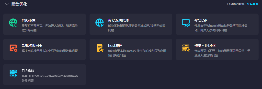 除了游戲基礎(chǔ)加速之外要是有其他的修復難題一度也可以在這里解決,入口就是在首頁的右上角,內(nèi)部富含了多種免費的修復方式,一鍵式的選擇也讓大家沒有后顧之憂,不管玩任何游戲之前先來清理、修復一下就好了。