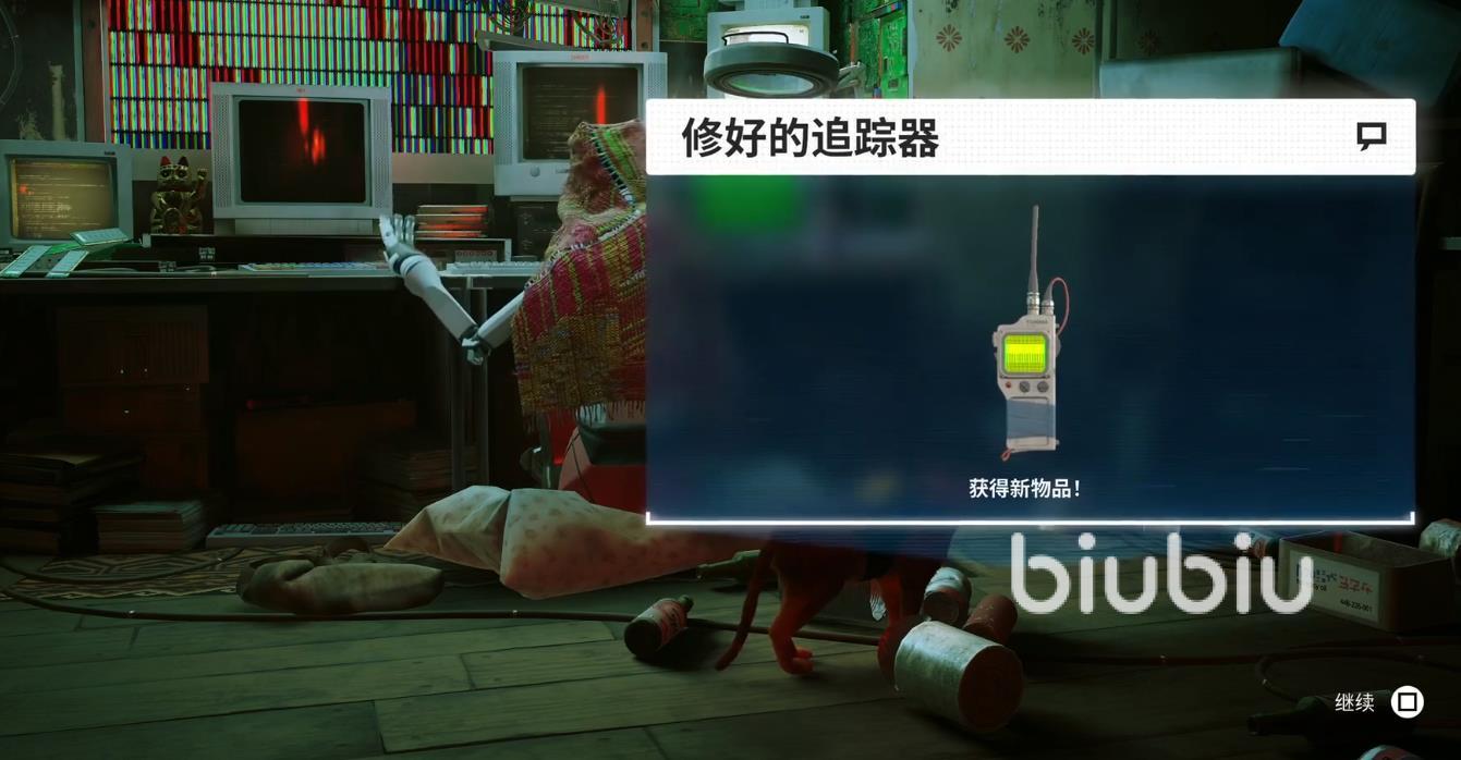 打開門以后,來到房間里,在架子上能看到一個箱子,將其推到地上,從里面能得到一個追蹤器,不過它不是好的,需要去找Elliot這個人去修它,而想要讓他修的話,就要給他斗篷,給了以后就能得到一個恢復(fù)正常的追蹤器了。
