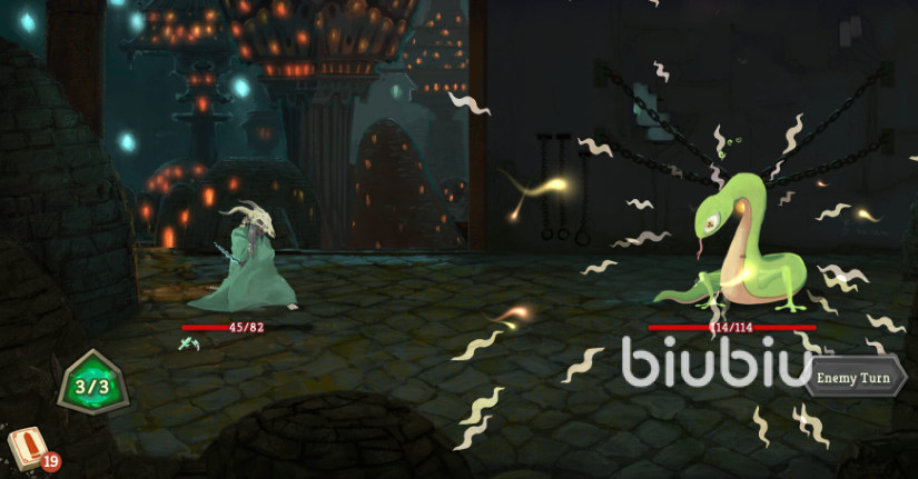 殺戮尖塔玩法很特殊,采用了經(jīng)典的地牢式闖關(guān)冒險(xiǎn)玩法。在不斷的推進(jìn)當(dāng)中,你將遇到各式各樣的怪物。這時(shí)你要運(yùn)用好自己的謀略,并組合好自己的卡牌,就能與對(duì)方發(fā)起決斗。我用卡牌無(wú)法解決對(duì)方,那你就可以嘗試?yán)@道而行。這樣就能夠在自己的羽翼尚為薄弱時(shí),才有力量和時(shí)間去發(fā)育好自己。不過(guò)解決了許多怪物后,你也可以在中途選擇不同的buff加成。逐漸變成強(qiáng)力的人物后,才能有資格甚至機(jī)會(huì)去解決金字塔頂端的對(duì)手。