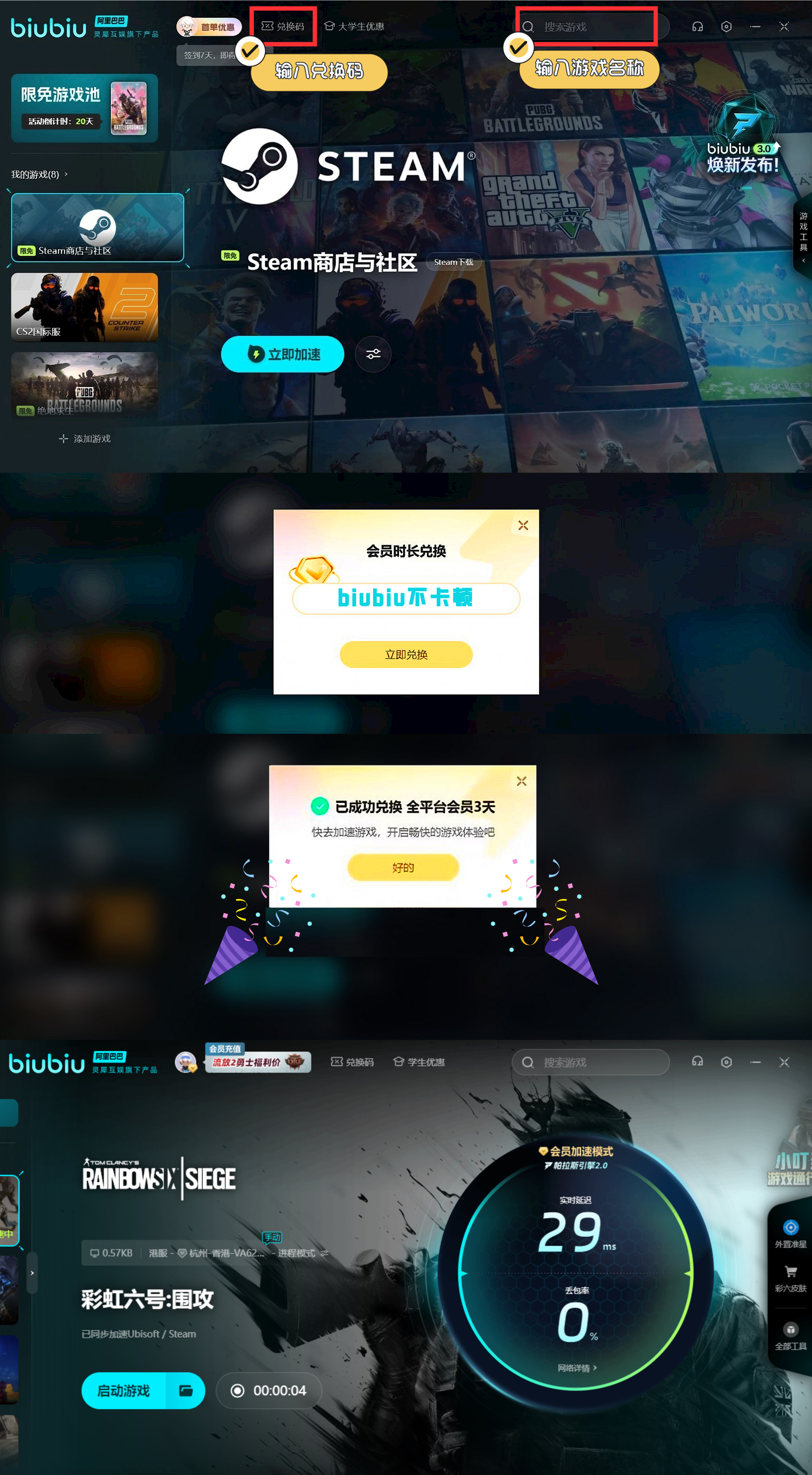 在這里小編為大家?guī)砹薭iubiu加速器,一款小巧便捷,性能出色的優(yōu)化工具,它支持了市面上多達2000多款的游戲使用,只需要搜索對應名稱,就能自動匹配最優(yōu)秀的智能優(yōu)化節(jié)點。新玩家還能獲得免費3小時的試用時間,在首頁輸入【biubiu不卡頓】還能領取3天超長的免費時長,這樣朋友們就能更好的體驗這款優(yōu)秀的工具。