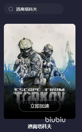 射擊游戲在戰(zhàn)斗的過程當中,有一個很大的特點,就是玩家需要隨時關注周圍的任何變化,否則敵人就可能從各種位置突然發(fā)起攻擊。但對于一些網(wǎng)絡不會太好的玩家來說,突然出現(xiàn)的延遲情況,會導致整個戰(zhàn)斗滯后,獲取信息的效率也會大打折扣。因此越來越多的人開始考慮使用加速器來解決這一問題,而選擇加速軟件的過程當中,小編建議各位先來看看biubiu加速器,因為該平臺內(nèi)可以直接搜索到逃離塔科夫。