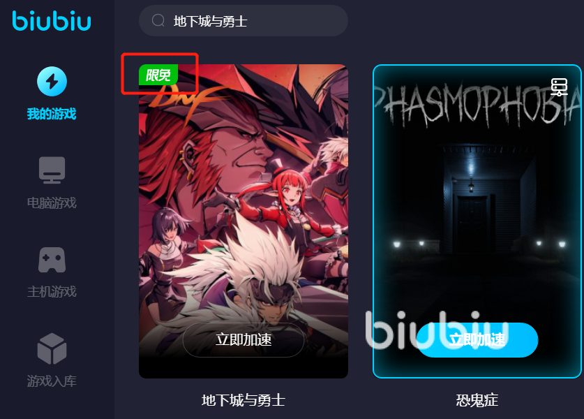 大家玩游戲的話肯定不會(huì)是只玩一款的,有時(shí)候就要和小伙伴一起開黑,幾款游戲之間換著玩,所以游戲方面的需求還是很大的?,F(xiàn)在一款biubiu加速器就可以滿足各種游戲的加速要求了。平臺從電腦游戲和主機(jī)游戲出發(fā),超多游戲內(nèi)容,一找一個(gè)準(zhǔn),對于部分搜索不到的,就要找biu仔反饋了。另外大家可能不知道新用戶注冊免費(fèi)使用加速24小時(shí)的活動(dòng),從而錯(cuò)過了,試用的機(jī)會(huì)可不多了。