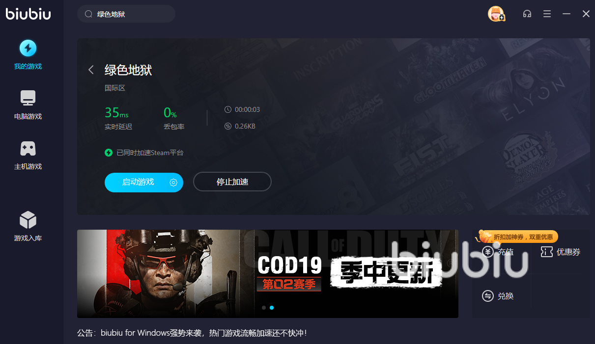 其次是擁有著海量游戲的游戲庫系統(tǒng),相信玩家們在體驗了綠色地獄之后,一定很想嘗試相同類型的游戲,比如森林,比如逃生吧!這些游戲biubiu統(tǒng)統(tǒng)都可以提供加速服務!更還有上千款火爆游戲在biubiu等待著大家哦!