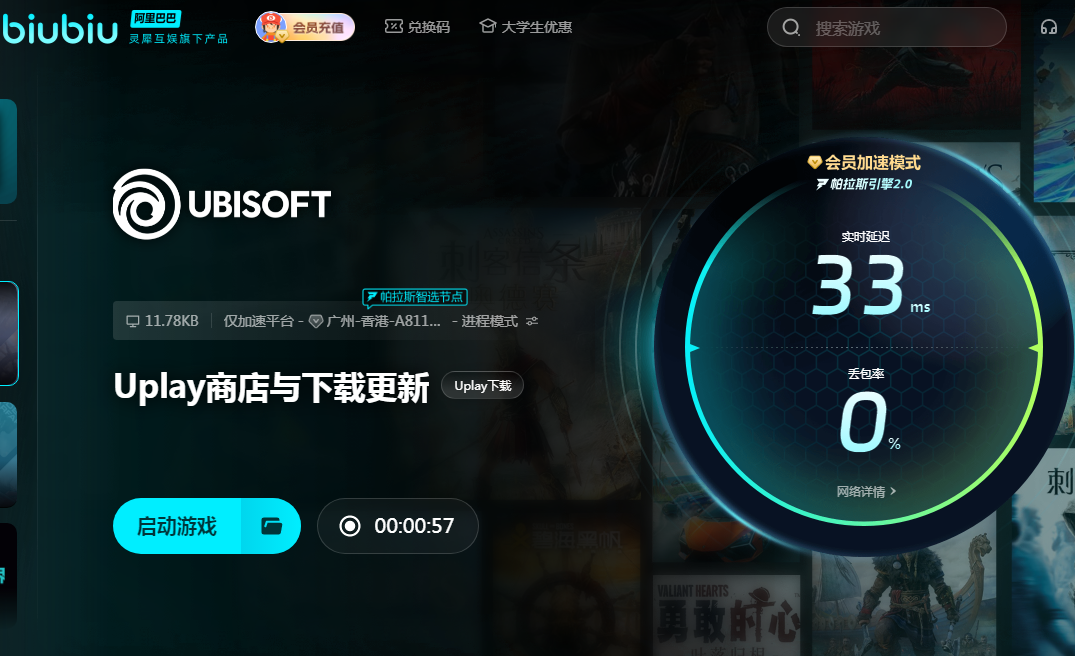 由于這是育碧發(fā)行的游戲,所以大家在玩的時候是需要全程聯(lián)網(wǎng)的,但是有的時候我們網(wǎng)速不佳就會導致游戲出現(xiàn)黑屏閃退等問題,這個時候只需要啟動了全新3.0版本的biubiu加速器,再重啟下游戲就可以了。這是因為它在全球部署海量游戲獨享高速專網(wǎng)通道,能最大限度突破數(shù)據(jù)傳輸?shù)奈锢肀趬?,所以在加速的過程中又快又穩(wěn)。