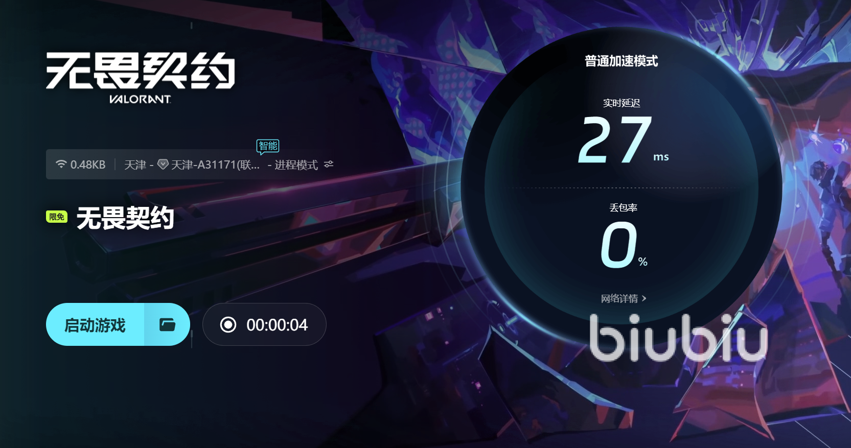 來源: 極光 作者: Mo 2024年10月23日 17:45無畏契約啟動閃退需要怎么處理?高人氣的射擊類型游戲中為玩家們準備了很多的英雄,不論是玩法模式還是裝備道具都很是吸引人,今天小編就來給大家聊聊閃退的這個問題,當網(wǎng)絡(luò)出現(xiàn)問題的時候游戲就會遇到閃退,黑屏以及卡頓等問題,最好的解決方方式就是搭配一款好用的加速器,小編覺得biubiu就非常不錯,如果你也感興趣的話跟著一起看過來吧。