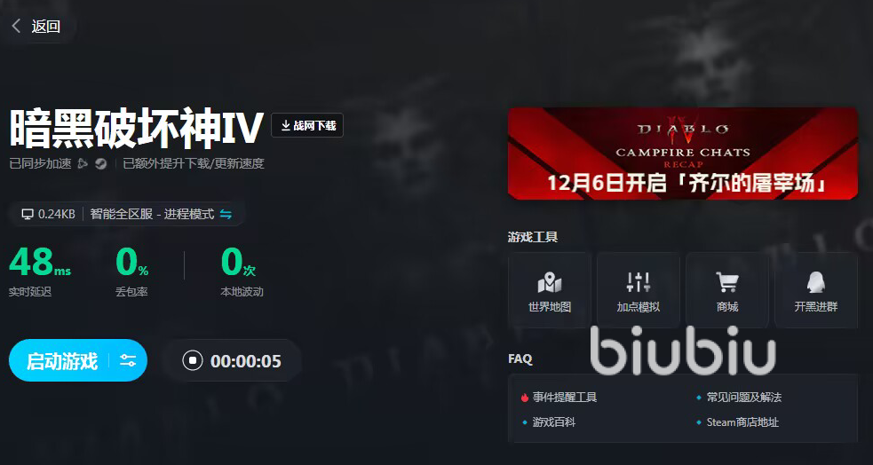 暗黑Ⅳ最核心的玩法就是去刷圖,因?yàn)榇蠖鄶?shù)珍稀的資源物品都是可以在地下城副本中獲得的,但是有些活動(dòng)是限時(shí)的,那該怎么節(jié)約時(shí)間呢?我們可以在背包里多背一點(diǎn)回藍(lán)回血的藥劑,這樣就可以持續(xù)戰(zhàn)斗啦!但是如果網(wǎng)速不佳、ping值過(guò)高就有可能出現(xiàn)狀態(tài)無(wú)法恢復(fù)的狀況。遇到該問(wèn)題不用著急,biubiu加速器擁有海量的加速節(jié)點(diǎn)可以避免上述的問(wèn)題。