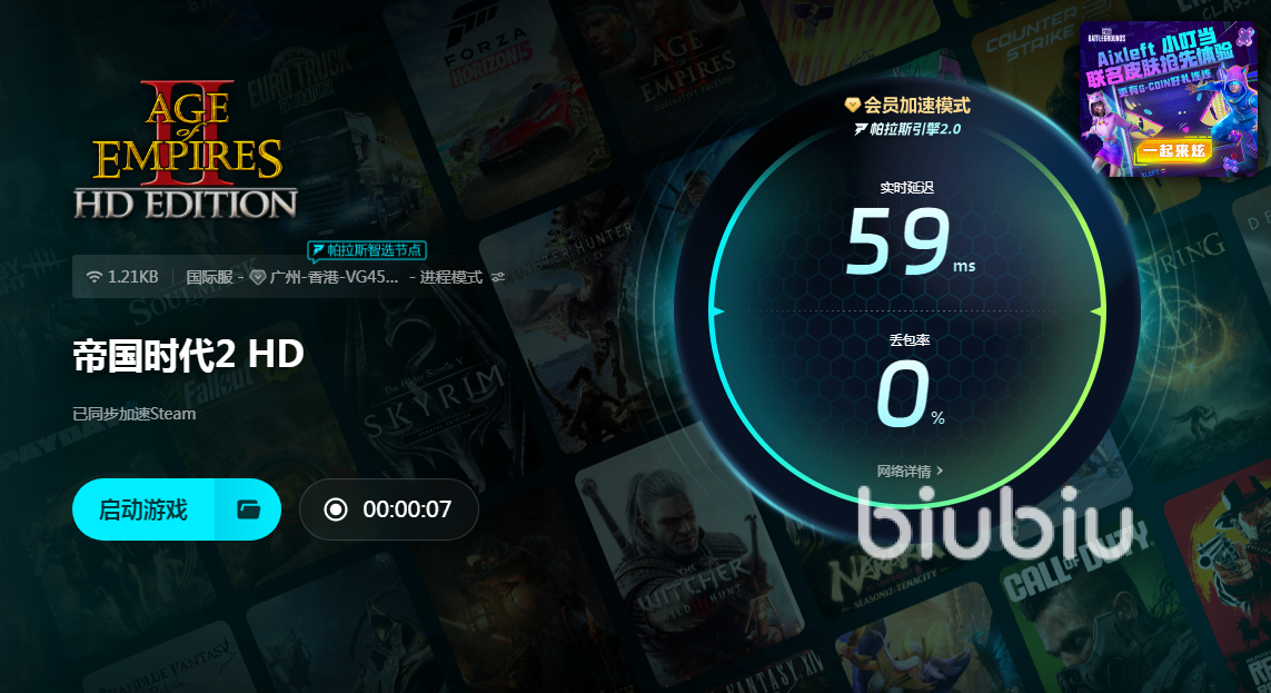 帝國(guó)時(shí)代2有著豐富的歷史背景元素,涉及到了多個(gè)歷史階段及相應(yīng)文明設(shè)定,玩家可以深入這些文明,去感受獨(dú)特科技以及建筑風(fēng)格。每個(gè)文明都有自己獨(dú)特的能力、單位和建筑,善于利用這些特殊之處,是玩家獲得勝利的關(guān)鍵。游戲中還擁有著兵種相互克制,以及各種資源等設(shè)定,考驗(yàn)玩家的策略屬性。游戲玩法上,支持多人對(duì)戰(zhàn),大家如果選擇和朋友或者其他玩家在這里對(duì)戰(zhàn),還有競(jìng)技樂(lè)趣。為了能夠在連接時(shí)候讓網(wǎng)絡(luò)更加穩(wěn)定,解決多人模式下遇到的卡頓問(wèn)題,biubiu加速器技術(shù)優(yōu)勢(shì),絕對(duì)是用戶所需要的?,F(xiàn)在直接點(diǎn)擊上面鏈接,就可下載biubiu進(jìn)行安裝,然后注冊(cè)新賬號(hào),能獲得24小時(shí)加速時(shí)間。使用完這24小時(shí)之后,再將兌換碼【biubiu不卡頓】輸入進(jìn)兌換功能中,就能免費(fèi)兌換得到三天加速時(shí)間,另外要注意,兌換碼福利老賬號(hào)也是可以使用的。