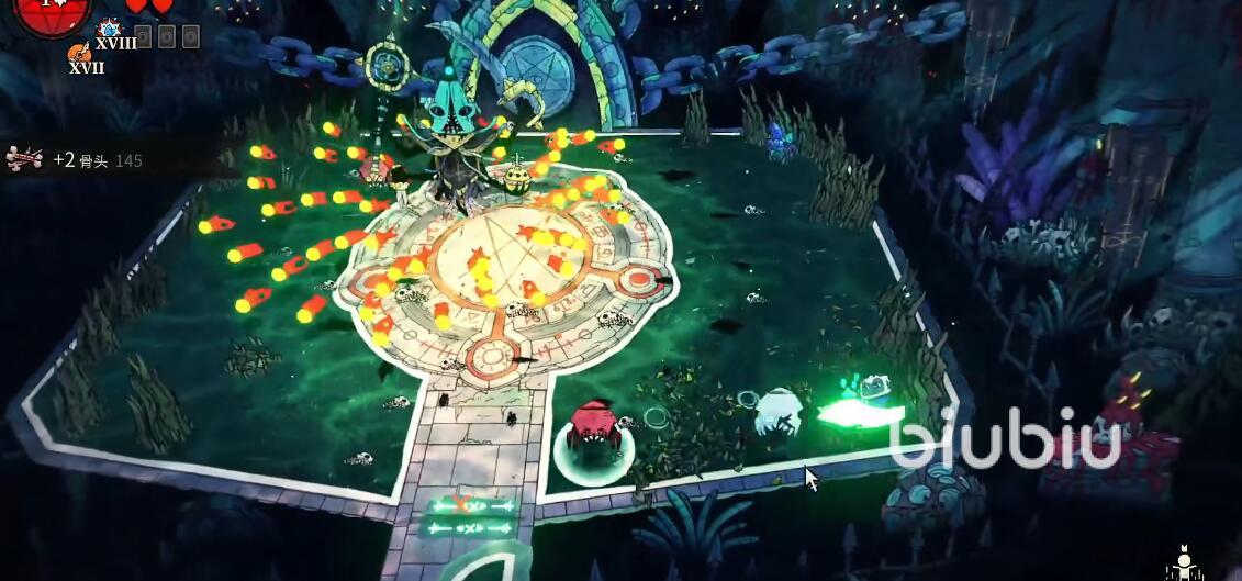 此時(shí),玩家們可以直接使用武器來快速進(jìn)攻,搭配上武器的蓄力攻擊,可以讓凱拉鰢在這一回合的戰(zhàn)斗當(dāng)中丟失掉部分生命值。隨后,凱拉鰢的技能會(huì)出現(xiàn)變化,發(fā)射的彈幕將毫無章法,不過整體的范圍要比之前的小一點(diǎn),玩家們只需要移動(dòng)到地圖的角落處進(jìn)行躲避即可。不過,該階段敵人會(huì)召喚出大量小怪來輔助進(jìn)攻。