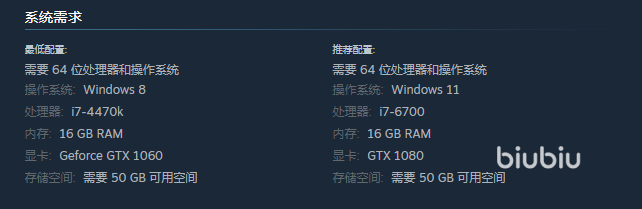 這款游戲?qū)τ陔娔X的配置要求不斷太高,win8的系統(tǒng)就可以體驗(yàn),配置分為最低配置以及推薦配置,玩家們想要順利的體驗(yàn)游戲,最好還是達(dá)到推薦配置在參與游戲,不然很容易出現(xiàn)卡頓、掉線的情況,具體配置要求如下: