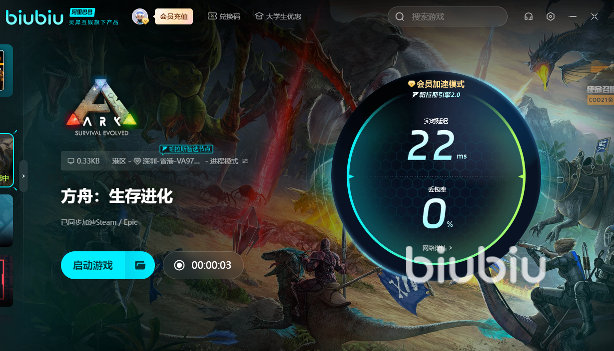 方舟這款游戲?qū)W(wǎng)速要求很高,一卡頓的話可能連游戲場(chǎng)景都加載不出來(lái)。用了biubiu之后,自然可輕松提速,讓你快速置身在真實(shí)廣袤的野外場(chǎng)景中。若是大家打算試加速一波的話,新用戶可領(lǐng)取24H的免費(fèi)加速;另外新老用戶可輸入【biubiu不卡頓】,額外獲得三天免費(fèi)加速。方舟生存進(jìn)化目前暫時(shí)沒(méi)有國(guó)服,想進(jìn)入其他區(qū)域的蠻荒世界。就得利用好加速器,才能優(yōu)化網(wǎng)絡(luò),讓你有資格挑戰(zhàn)島嶼中的強(qiáng)大生物。