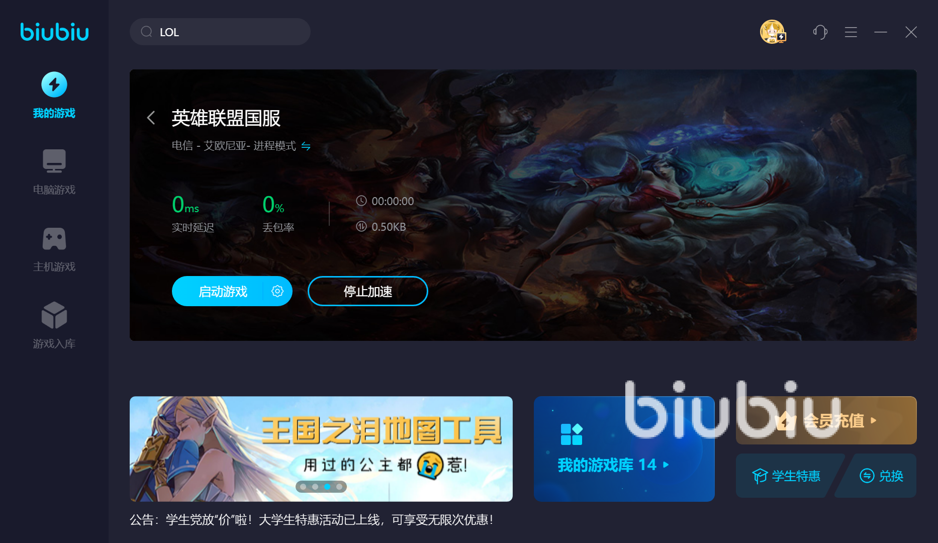 來源: 極光 作者: 澈 2023年07月25日 14:38lol這款多人在線團(tuán)戰(zhàn)競技游戲?qū)τ谕婕覀冎g的技能平a乃至走位的配合要求都是相當(dāng)嚴(yán)格的,一波的掉幀或者是網(wǎng)絡(luò)卡頓導(dǎo)致的結(jié)果可能是一波團(tuán)滅,有很多玩家想知道配置足夠但玩lol掉幀怎么辦,其實(shí)這也是小編在之前電腦設(shè)備不好的時候非常困擾的問題,想要暢玩lol其實(shí)并不難,小伙伴們可以跟著小編一起來看看biubiu加速器。