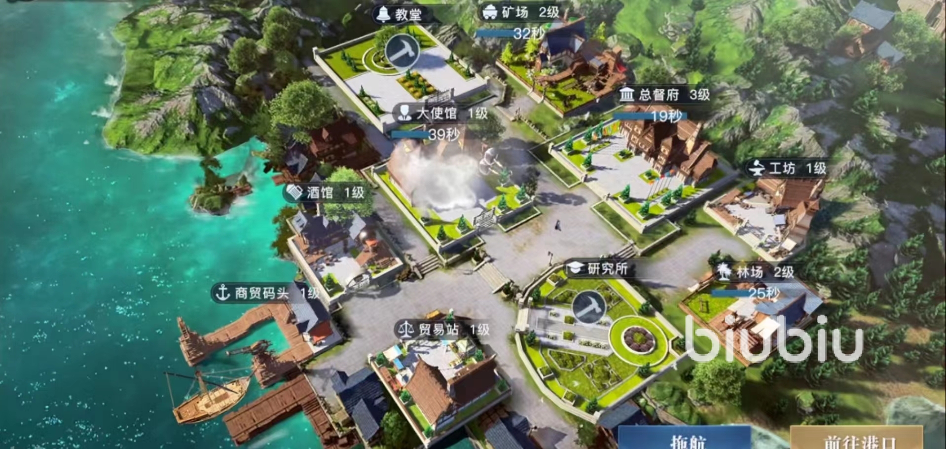 后續(xù)需要玩家發(fā)展一段時間,有了足夠的資源即可建立升級貿(mào)易戰(zhàn)、商貿(mào)碼頭、酒館、研究所這類可以獲取其他收益的功能性建筑。但具體的升級順序取決于玩家的玩法,玩家要是喜歡打架,那么生產(chǎn)航海士的酒館和提升屬性的研究所性價比就很高。要是玩家注重發(fā)展,那么開通自動貿(mào)易的商貿(mào)碼頭,幫助玩家跑圖的大使館就顯得非常有升級的必要了。