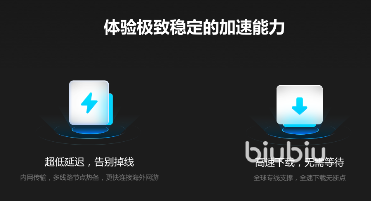 當(dāng)然biubiu加速器的好處遠(yuǎn)遠(yuǎn)不止這么一點(diǎn),目前針對(duì)大多數(shù)游戲采用了專線連接,所以大家可以享受最低的延遲進(jìn)行游戲,新人加入biu仔大家庭還可以領(lǐng)取24小時(shí)免費(fèi)會(huì)員加速時(shí)間。