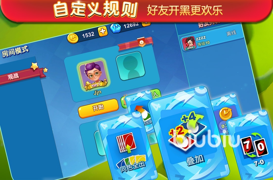 UNO是一款休閑益智類的經(jīng)典卡牌游戲,你與自己的朋友組成一個(gè)團(tuán)隊(duì)或者是利用設(shè)備直接匹配,西方的一個(gè)經(jīng)典卡牌游戲,讓中國的小伙伴也能夠體驗(yàn)到其中的樂趣,最先開始每名玩家抽取一張卡牌,然后分值最高的發(fā)牌人最先出牌,靈活的運(yùn)用技巧和策略,思考出牌的方式才能更容易勝利,玩法簡單,兩三分鐘的時(shí)間就可以讓大家快速上手,很多小伙伴都想知道在體驗(yàn)游戲當(dāng)中出現(xiàn)卡頓和掉線的情況怎么辦?那你第一個(gè)就應(yīng)該想到利用biubiu加速器來有效的降低這些現(xiàn)象的出現(xiàn)了。