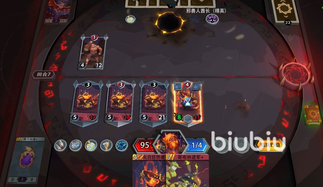 在低輪回下,每回合將敵人全部焚燒殆盡就可以兼顧打臉和護臉,然后從輪回4之后,出現(xiàn)的夢魘不僅會大幅度吸收掉火刃狂熱者的傷害,還會因為我們這套卡組沒有什么鋪場能力而頻繁地對我方的生命值造成威脅。在輪回后期用臉去擋夢魘的一輪輸出,半血以下生效的道具們也能在本卡組發(fā)揮出巨大的作用。