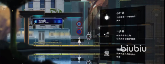 來到第五章中央公園站臺,柜員機(jī)器人501繼續(xù)為你介紹,它會給你開啟一個輔助功能,提供三個技能讓你選擇,第一個是小燈籠,可以讓你立刻獲得一個額外的黃光。第二個是計(jì)步器,在游戲中的右上角為你記錄光移動的步驟數(shù)。還有一個是鏡像指令,可以同步機(jī)器人與你進(jìn)行反方向的移動。
