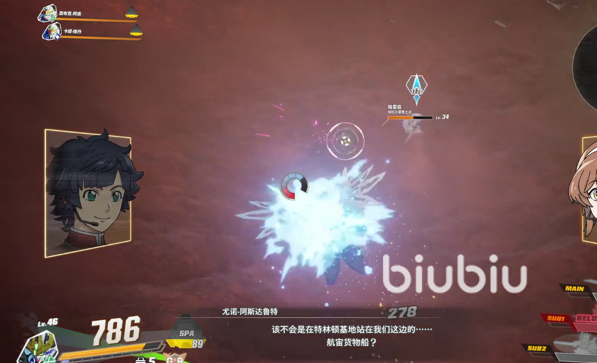 再生高達也是同樣的玩法,不過再生好在武器是獠牙,不會被障礙物或者隊友擋?。▽崗椡沧樱蛘邎髥实奈淦魇菚徽系K物和隊友擋住的),可惜就是副武器1是格斗判定,吃不到射擊加成,所以傷害比報喪低,不過不會打空還有三紅是這臺機子的優(yōu)點。