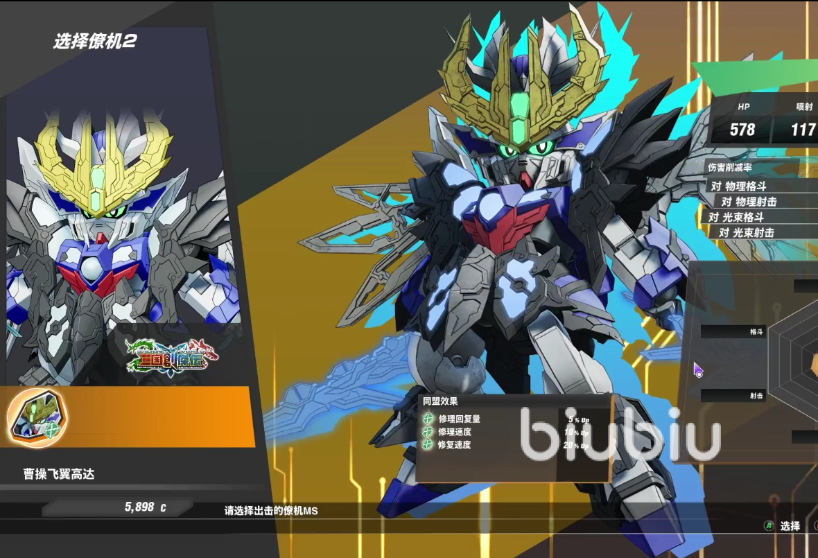 先說dlc獲取的兩臺射擊型高達,分別是曹操異端高達以及指揮官高達,指揮官高達則是射擊機體的畢業(yè)高達之一,因為游戲中存在將光束攻擊轉化為物理傷害的零件,再加上指揮官高達本身就非常不錯的面板以及備彈量,哪怕在后期,也算是T1級別的射擊機體,而且這個機體的所有彈藥都是實體彈藥,可以無視敵人的I立場,成長也不低,曹操異端高達則更像一臺格斗型高達,這兩款高達的終結技分別是霸天鳳凰斬,以及強力突襲,這兩臺機體技能最好用在boss身邊的雜兵多的情況下,能最大的發(fā)揮技能的輸出。