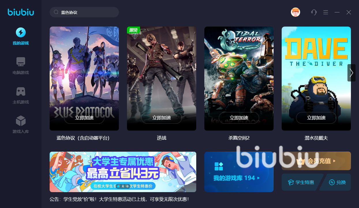 游戲本身是比較依賴于玩家和隊友之間合作的,尤其是組隊完成挑戰(zhàn)任務,如果大家的網(wǎng)絡一會處于卡頓的情況中肯定是不行, 如果是配置不達標還好說,更換就行了,但是網(wǎng)絡的問題就需要用到專業(yè)的工具來處理,其中像biubiu的表現(xiàn)就很是不錯,它能夠為用戶的游戲帶來一個穩(wěn)定的傳輸體驗,整個過程都是不會有斷點和丟包的現(xiàn)象,讓大家的體驗更加流暢,關(guān)鍵是現(xiàn)在新用戶注冊使用,是能享受24小時會員試用的。