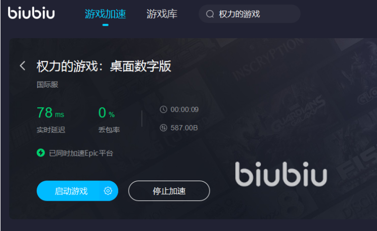 以上就是本次權力的游戲桌面版加速器下載鏈接2022的所有內容了,biubiu加速器的功能除了上面介紹的之外還有許多功能等待玩家使用,不知道大家對于這款加速器是否還喜歡呢?如果大家喜歡的話那么就趕快下載體驗一下吧!