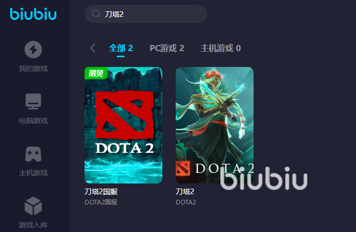 biubiu加速器使用方法也是很便捷的,沒有太多花里胡哨的步驟,在下載完成之后,我們直接啟動,首頁搜索DOTA2就可找到對應的游戲,會有兩個版本,分為國服以及國際服,玩家們直接選擇想要體驗的版本進行加速就可以了。