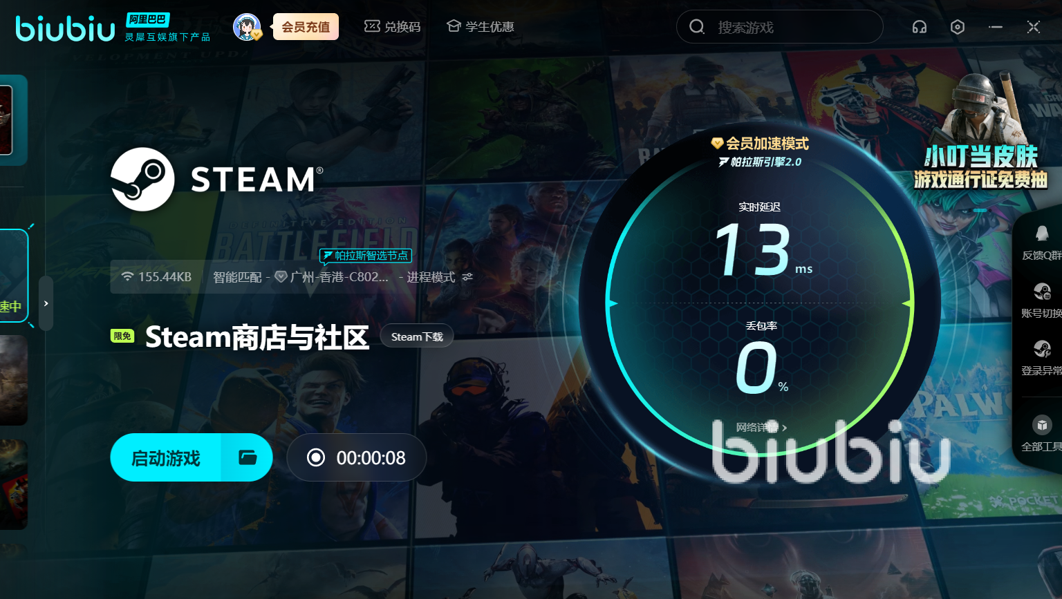 對于國內(nèi)玩家在打開商店時遇到的打不開、轉(zhuǎn)圈等問題,以及下載游戲包速度慢、中斷等情況,其實大多是由于遠(yuǎn)距離網(wǎng)絡(luò)波動所致。對于STEAM需上頻繁聯(lián)機的項目,使用biubiu這款加速工具就能簡單解決這些問題,確保網(wǎng)絡(luò)穩(wěn)定、下載速度流暢。