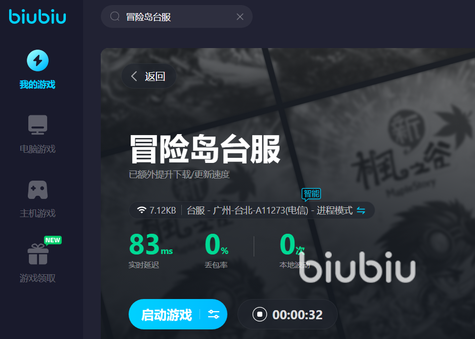 雖然冒險島算不上大型的網(wǎng)絡游戲,但是也有許多小伙伴為了追求游戲中更加極致的體驗感,也是可以利用加速器來對網(wǎng)絡進行加速優(yōu)化的。當然biubiu作為一款首選的加速器,他的使用操作及其簡單方便,只需一鍵點擊就可以輕松開啟對游戲網(wǎng)絡的專屬加速。