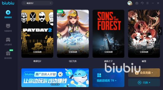 在眾多的加速器當(dāng)中,biubiu加速器具有很多的優(yōu)點(diǎn),也是很多的玩家都在使用的,可提供國內(nèi)外很多游戲的加速服務(wù),會自動定位匹配、實(shí)時變更加速節(jié)點(diǎn)。在加速的過程當(dāng)中就可感受到自己所玩的游戲沒有卡頓的問題,在登錄游戲或者是游戲體驗(yàn)的時候,都能擁有流暢的網(wǎng)絡(luò)。支持市面上很多熱門的網(wǎng)絡(luò)游戲,包括國內(nèi)外的一些大型游戲或者是小型游戲,玩家可通過進(jìn)入應(yīng)用,搜索自己所玩的游戲名稱就可看到立即加速按鈕,點(diǎn)擊以后就可通過如今的免費(fèi)福利,沒有任何花費(fèi)來體驗(yàn)一下。