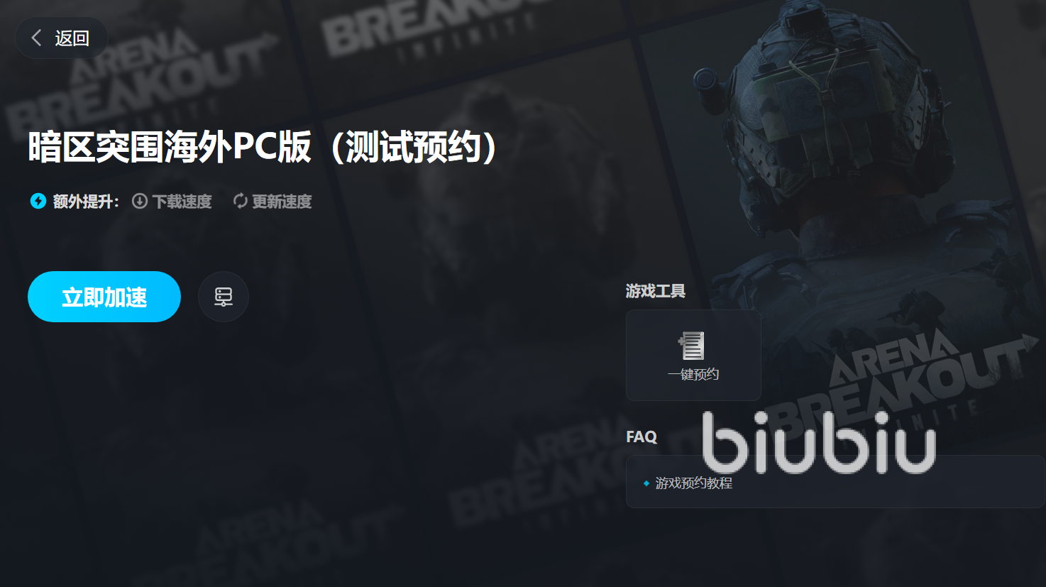 目前還有很多的伙伴不知道去哪個(gè)平臺進(jìn)行預(yù)約,點(diǎn)擊上方準(zhǔn)備的按鈕下載biubiu加速器,安裝注冊后再首頁搜索暗區(qū)突圍海外PC版(測試預(yù)約),啟動(dòng)加速之后點(diǎn)擊一鍵預(yù)約就可以跳轉(zhuǎn)進(jìn)入官網(wǎng),填寫相應(yīng)信息有機(jī)會獲取內(nèi)測資格。biubiu一款非常專業(yè)的多功能加速器,新用戶直接能夠獲取24小時(shí)的加速時(shí)間獎(jiǎng)勵(lì),畢竟在游戲的時(shí)候很多玩家會因?yàn)榫W(wǎng)絡(luò)的問題受到干擾,而這款加速器可以幫助大家有效優(yōu)化數(shù)據(jù)傳輸速度,隨時(shí)隨地開啟檢測模式,讓玩家可以在穩(wěn)定的環(huán)境中操作,當(dāng)新人時(shí)間結(jié)束了之后還可以用【biubiu不卡頓】口令換取三天的繼續(xù)加速時(shí)間,新老用戶都可以兌換領(lǐng)取。