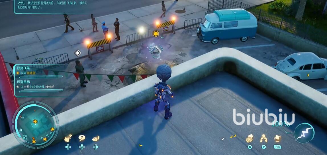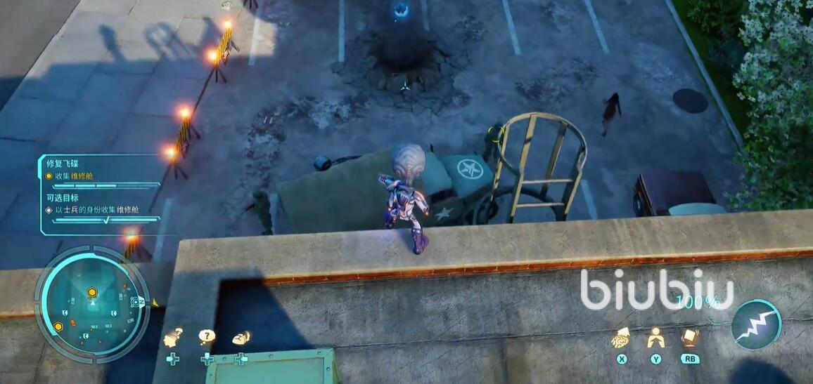 開啟收集維修艙任務(wù)之后,玩家們首先就可以在街道旁發(fā)現(xiàn)第一個維修地點,在這里會有幾名敵軍的士兵。大家可以直接通過發(fā)動念力來操控一名敵人的身體,這樣對方就不會有所察覺,而玩家們可以順利在該地點將第一個維修艙收集完畢。注意,直接發(fā)動攻擊的話,敵人會摧毀掉維修艙。
