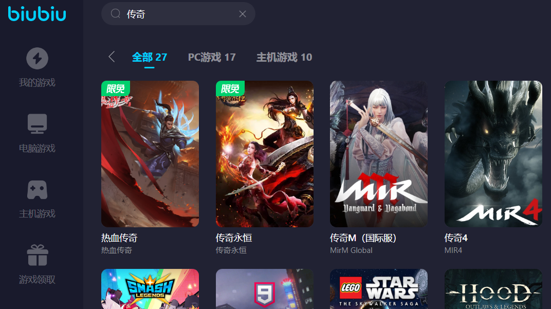 用戶在biubiu上搜索傳奇這款游戲的時候會發(fā)現(xiàn),在標(biāo)標(biāo)上有許多其他版本的傳奇游戲,相信大家能夠在其中找到自己想要加速的那一款,只需點(diǎn)擊想要加速的那一款進(jìn)入加速。