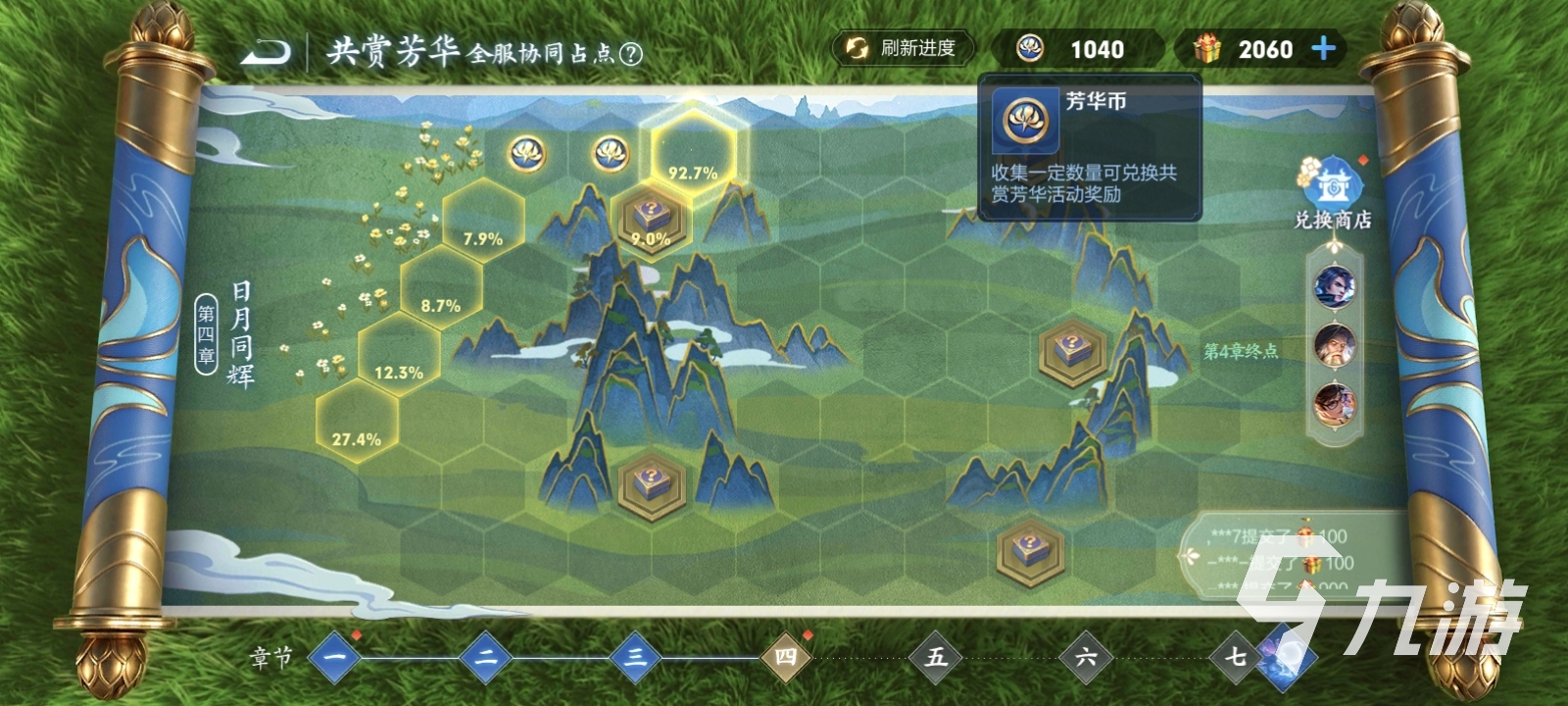 當然兌換其中的獎勵,還需要芳華幣。芳華幣可通過兩種方式獲取。第一種為每天解鎖的地塊產(chǎn)生,地塊需要玩家們共同提交芳華禮盒來解鎖,地塊每次首次提交都能產(chǎn)生額外的芳華幣,在后續(xù)的提交中芳華禮盒都能一比一轉(zhuǎn)化成芳華幣。第二種方式和第一種類似,但需要同服玩家們的共同努力,在解鎖相應(yīng)地塊后,可通向最后的禮盒,禮盒中也可獲得芳華幣。