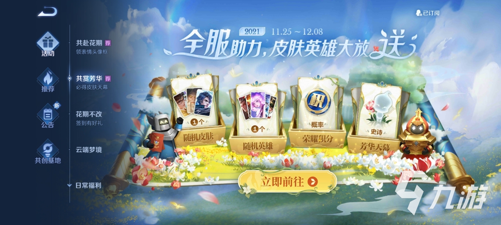 來源: 極光 作者: 隱形守護者 2021年12月05日 23:27在近期的王者榮耀中,六周年最后的福利共賞芳華活動正式上線,本次共賞芳華活動在皮膚方面也是十分誘人。那么王者榮耀共賞芳華活動怎么完成?小編就來告訴大家在哦!想知道的小伙伴就和小編一起來看看吧!