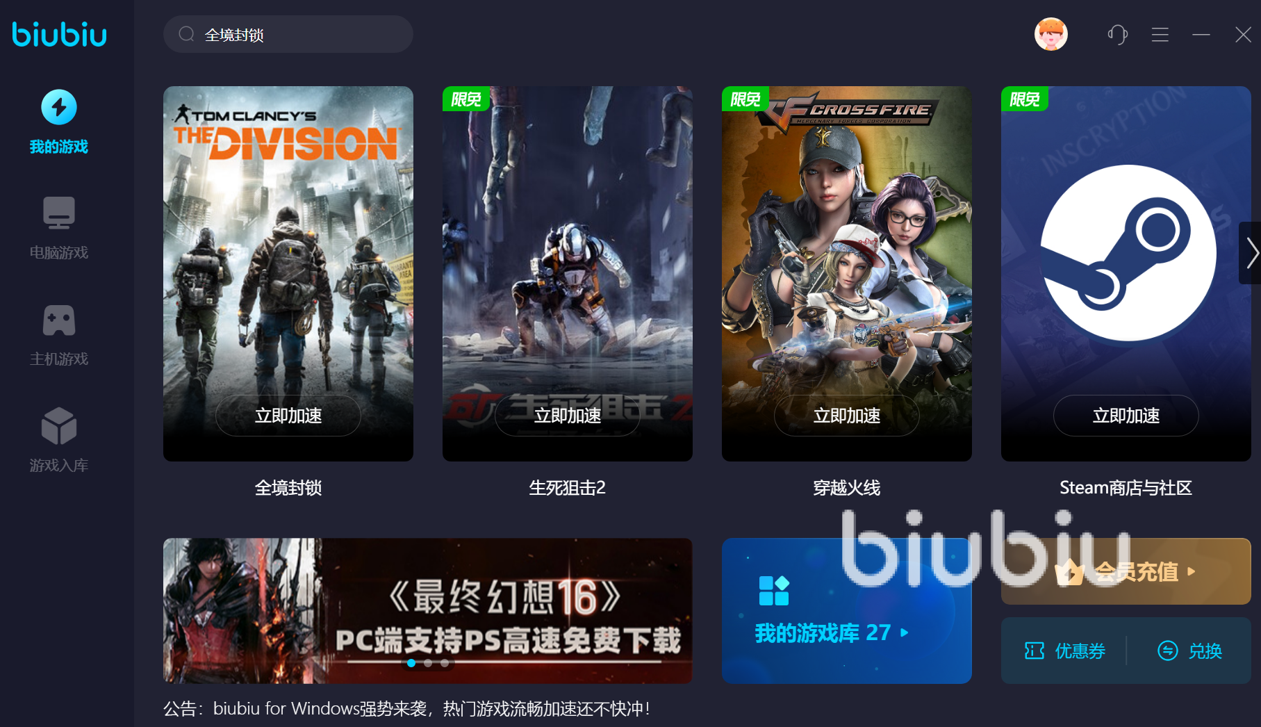 上述文章就是關(guān)于全境封鎖加速器哪個(gè)好這個(gè)話題的全部解析了,biubiu真的是不可多得的加速神器,不僅僅可以給pc游戲進(jìn)行加速,對(duì)于手機(jī)端,steam等平臺(tái)也是支持的,高效的幫助用戶優(yōu)化當(dāng)下的網(wǎng)絡(luò)信號(hào),提供最穩(wěn)定的網(wǎng)絡(luò)環(huán)境,再也不擔(dān)心掉線的問(wèn)題了。
