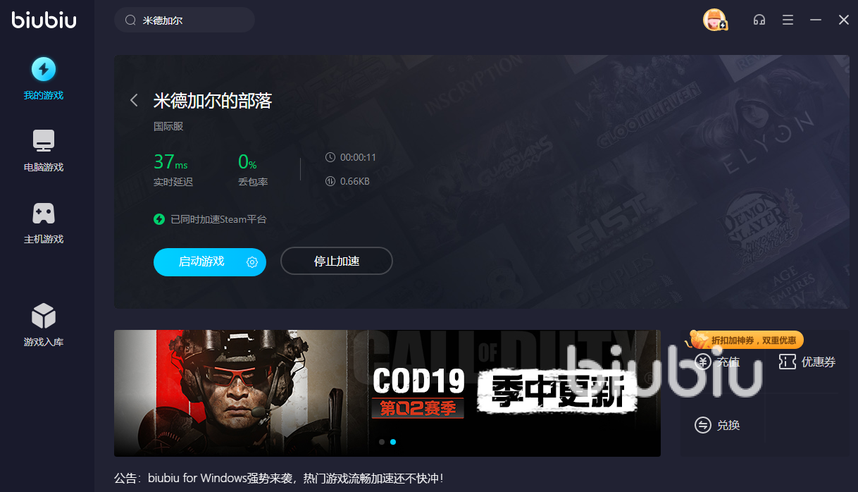 以上就是小編為大家?guī)淼拿椎录訝柕牟柯浼铀倨魍扑]了,在聽完小編的介紹以后,不知道是哪一點(diǎn)戳中了小伙伴們的心呢?快快下載biubiu加速器來進(jìn)行體驗(yàn)吧,新用戶下載即送24小時(shí)的免費(fèi)加速體驗(yàn),首次充值更享受四折的優(yōu)惠哦,福利多多,小伙伴們趕快行動(dòng)吧~