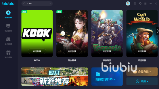 福利的內(nèi)容就是新用戶可通過注冊登錄的方式,對自己喜歡玩的游戲進(jìn)行免費(fèi)加速24小時(shí),不管是比較常見的游戲,還是像KOOK這種專門為了游戲應(yīng)用而生的,都可以使用。第二種福利可讓領(lǐng)取到的用戶享受免費(fèi)對游戲加速三天,只需要玩家輸入兌換碼【biubiu不卡頓】即可,也是新老用戶全部都能領(lǐng)取的。
